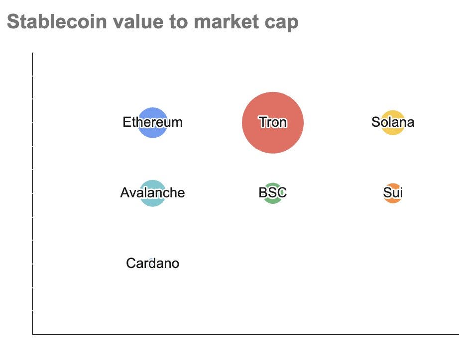 For example, stablecoins on a chain versus that chain’s market cap. It seems to me that you want the chain to be worth a fair amount more than the stablecoins its playing host to, right? Makes sense?